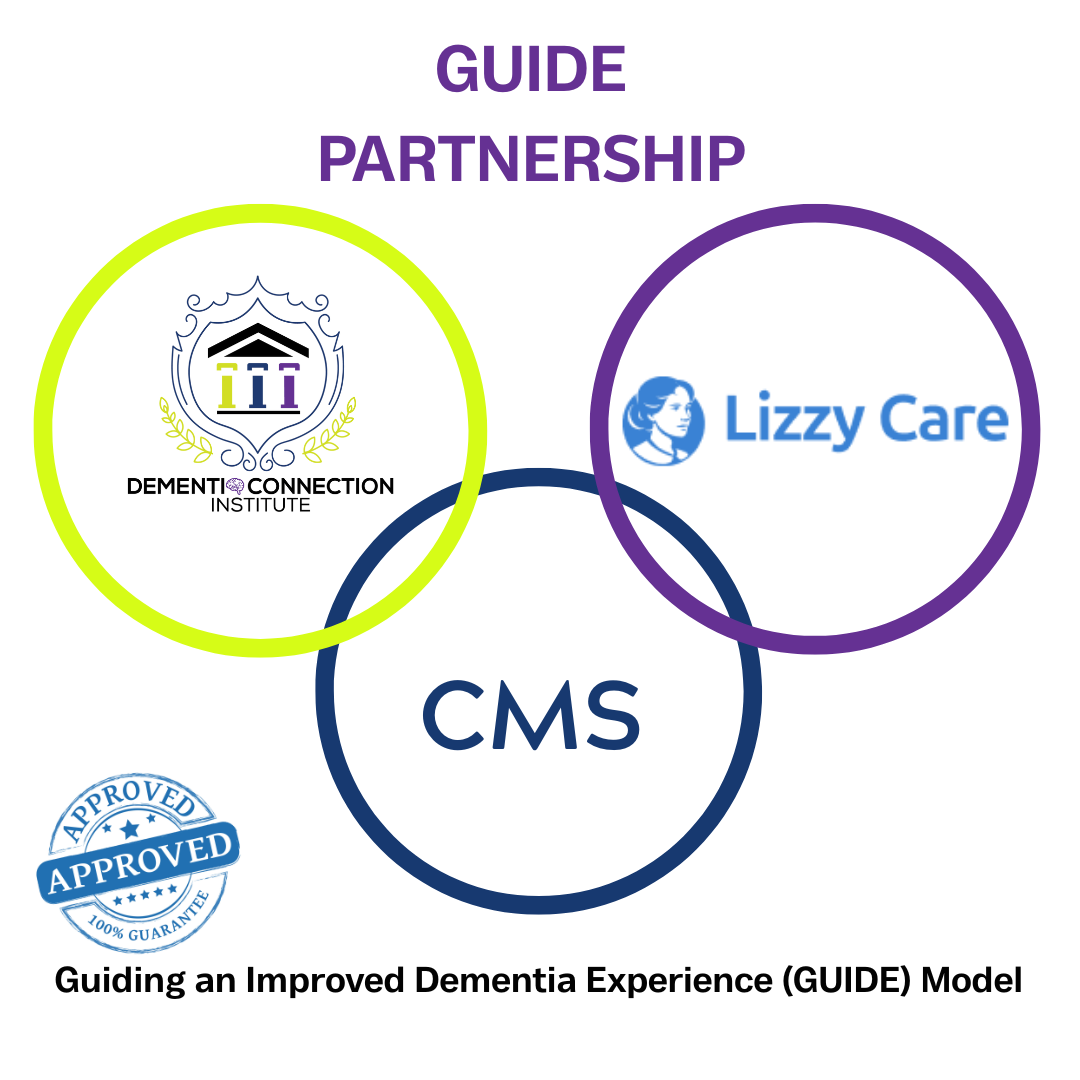 The Dememtia Connection Institute works with Lizzy Care as certified GUIDE Model participants. Thanks to the Medicare GUIDE Model, this program is completely free of charge to people enrolled in Medicare Part B and their families. Lizzy Care and Dementia Connection Institute will handle all billing with Medicare, ensuring no out-of-pocket costs, copays, or fees for participants. No Cost to Families. It’s That Simple.